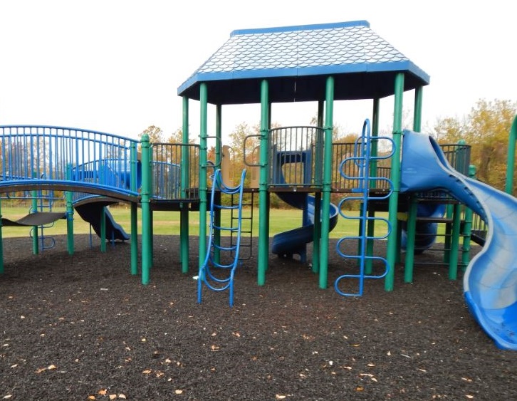 Playground Surface Type: Engineered wood fiber, Synthetic rubberized material