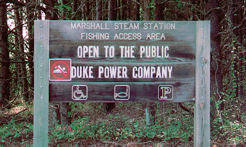 Trail Description: Duke Power Company has done an excellent job with the public fishing area at the Marshall Steam Station. It is FREE to the public, has a nice parking lot with porta-johns, graveled walkways, and ample lighting at night. This fishing area is located off Highway 150 at the Marshall Steam Station. The fishing area is along the output from the steam station or Hot Hole.