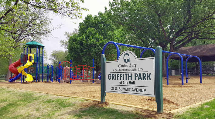 Special Features/Comments: Griffith Park at City Hall is a medium-size park located next to Gaithersburg City Hall. There are plenty of activities to do within this park. The park has two tennis courts, a tennis wall for individual practice, an open field for various outdoor games, two half-court basketball courts, and two playground areas. Alcohol not allowed in the park. No smoking. This information is subject to change. Please direct any questions to the Department of Parks, Recreation and Culture at (301) 258-6350 or parksrec@gaithersburgmd.gov.
